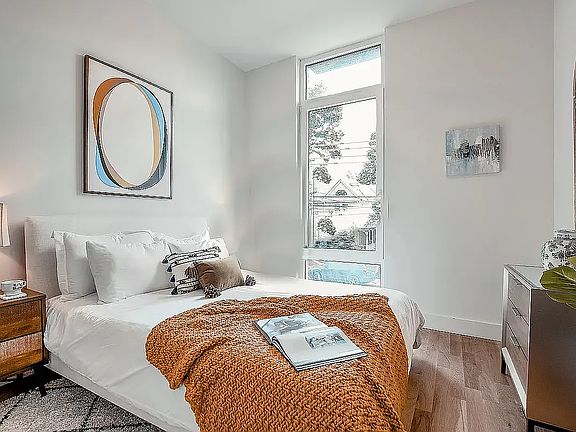 Residents can enjoy a range of amenities, including a virtual doorman, a laundry room, a fitness center, a shared rooftop deck, a package room, and a bike storage room.