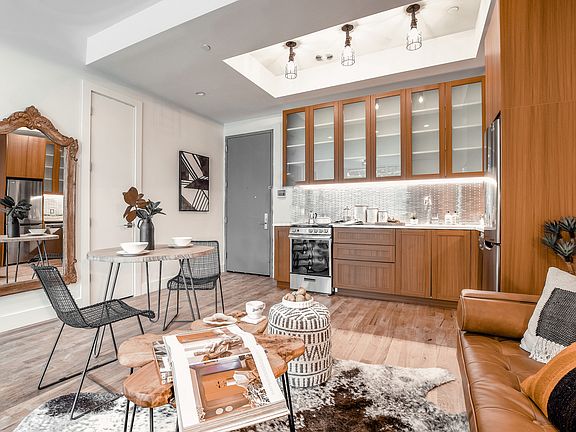 Welcome to an apartment where elegance and comfort come together seamlessly, elevating your everyday living. This stunningly updated two-bedroom, one-bathroom unit includes a private balcony and is situated in a high-end building. It boasts hardwood floors, stainless steel appliances, a dishwasher, split heating and cooling systems, and large windows. The apartment is available both furnished and unfurnished. Residents can enjoy a range of amenities, including a virtual doorman, a laundry room, a fitness center, a shared rooftop deck, a package room, and a bike storage room. Photos are of a similar unit.