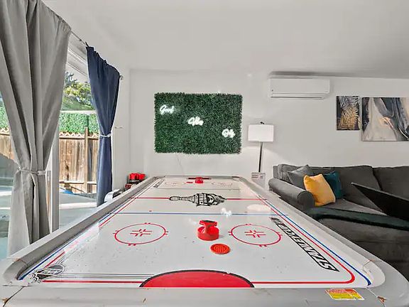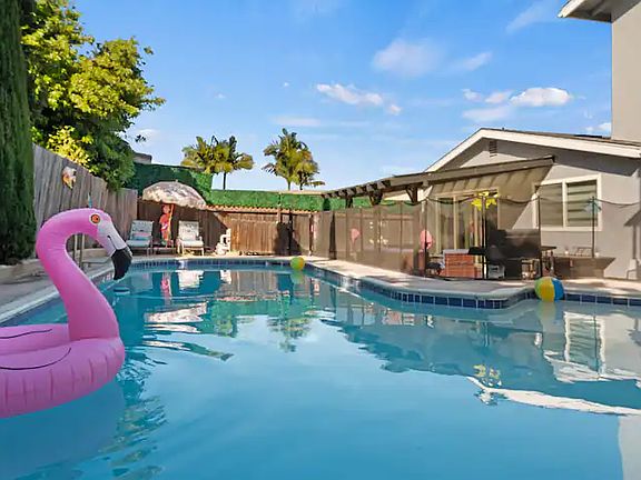 Relax with your family in this clean and spacious, single level home located in a quiet code-de-sac of Chula Vista. This 3 bedroom 2 bathroom home has all the amenities needed for your stay, including a 6-in-1 high chair, pack and play, and an extra large gated pool. There are plenty of indoor and outdoor seating and dining areas, an indoor poker table, an air hockey table, outdoor covered patio, and outdoor tables for dining. Owners pay for everything including pool and landscaping services. There is an electricity cap of $500 per month. Bi-weekly professional cleanings are included in the price. No smoking and No party