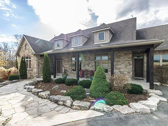 Looking to escape the city and enjoy the privacy of rural living, but still have the convenience of local amenities? This is the retreat you've been looking for. This custom-built executive bungalow is fifteen minutes to Kitchener or fifteen minutes to the 401/Cedarcreek. With 3+1 bedrooms, 3 1/2 baths, and 2800+ sq ft on main level, this home is perfect for any family. The luxurious master bedroom, featuring a newly renovated ensuite, has a walk-out to deck and hot tub for instant relaxation. The spacious chefs' kitchen and dining area flows into the large living space highlighted by a beautiful field stone fireplace. A wall of windows allows for stunning views of pond and forest in the 1.44 acre backyard. Relax on the extensive deck in the back for entertaining and enjoying the newly installed pool. The lower level has an additional bedroom, 3pc bath, bonus room that could be another bedroom/office, and opportunities to add your own customization to the partially finished area. Very large recreation room and two walk-outs to the beautiful grounds as well as another wall of windows allows for captivating views and lots of natural lighting. Not to mention the in-floor heating, including the 4 car garage spaces. Brand new boiler. Newly painted and upgraded bathrooms. This home is sure to impress and have something for everyone in the family. Call today for your personal viewing.