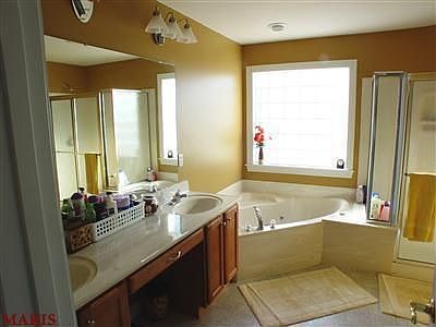 Incredible custom built 1.5 story home with 2 MASTER BEDROOMS will meet your every want and need and more! There is nearly 3700 sq ft of finished space above grade plus more than 1300 additional square feet waiting to be finished in the walk-out Lower Level. If you need space do not miss this home! It all starts with the welcoming curb appeal of professional landscaping, aggregate stone driveway & sidewalk, brick & vinyl exterior, covered front porch and brick mailbox. The spacious, tiled foyer invites you in and surrounds you with arched doorways that open to an elegant dining room with crown molding and the living room. Jaw-dropping hardwood flooring graces nearly the entire main floor and flows up the stairs to the magnificent Bonus Room. The awesome two-story family room measures 20x20 and features a wall of Palladian windows that surrounds the lovely gas fireplace. The arched doorways continue through to the kitchen/breakfast room. A dry-bar with wine rack & see-thru glass cabinets separates the family and breakfast rooms. The spacious kitchen features maple cabinets topped with crown molding, a large “butterfly” island, a large walk-in pantry, tile backsplash built-in oven & microwave and atrium doors to an 18x16 deck that overlooks the large level backyard and extended patio. The main floor also features a master bedroom suite that would also make a great in-law suite or teen’s room. The upper level won’t disappoint either! An incredible bonus room features vaulted ceilings and the same gorgeous hardwood floors overlooks the Family Room. The upper level Master Suite provides elegance with its double door entry and coffered ceiling. It also features 2 walk-in closets, a whirlpool tub, dual vanity and oversized shower in the bath. The other two upper level bedrooms are roomy as well, one offers a walk-in closet. This wonderful home has lots of extras such as dual HVAC and humidifier, walk-out lower level with bath rough-in and slider to large patio & level yard, extra deep bay on 3 car garage…THIS HOME IS A MUST SEE!