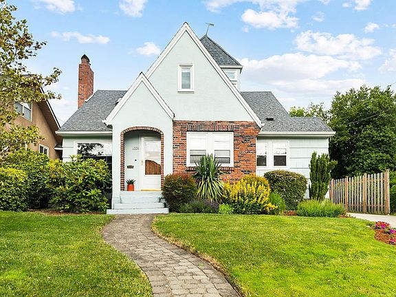 3 Blocks to coveted Mt Tabor Park! This English Tudor is located on one of the nicest streets and offers great separation of space for work at home & easy living. Gleaming hardwoods, natural mahogany trim, efficient kitchen with nook, slider to very private back yard & covered patio, upstairs suite with perfect home office or library. Much potential in unfinished basement with high ceilings, new driveway, detached garage. See this well-maintained home today! [Home Energy Score = 2. HES Report at https://rpt.greenbuildingregistry.com/hes/OR10201877]