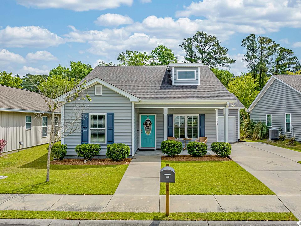 Looking for a charming, cozy, cottage close to Historic Downtown Conway? Look no further! Nestled in the Snowhill Community, this three bedroom, two bath home is sure to please. Newly built in 2014, it’s turn key and boasts vaulted ceilings in the living room, a custom drop zone, several closets for storage, upgraded fixtures throughout, stainless steel appliances, large pantry and separate laundry room with beautiful wallpaper that’ll make your chore a breeze. Split floor plan, two spacious bedrooms share a full bath in the front and the inviting primary suite is tucked away in the back with tray ceilings, his and her closets. Primary suite bathroom features double vanity sinks, walk in shower and garden tub. Enjoy entertaining on your back patio with pastoral views or walk over to the local Sherwood park (.2 miles). One car garage and long driveway provide ample parking space. Only a short .7 mile walk to Conway Elementary School, a 1.5 mile walk to Downtown Historic Conway and Riverwalk or quick 17 mile drive to Myrtle Beach. Low HOA, X flood zone; home has not flooded. Don’t let this one get away!   Buyer and Buyer's agent responsible to confirm zoning, all measurements, square footage and HOA info. in associated docs.