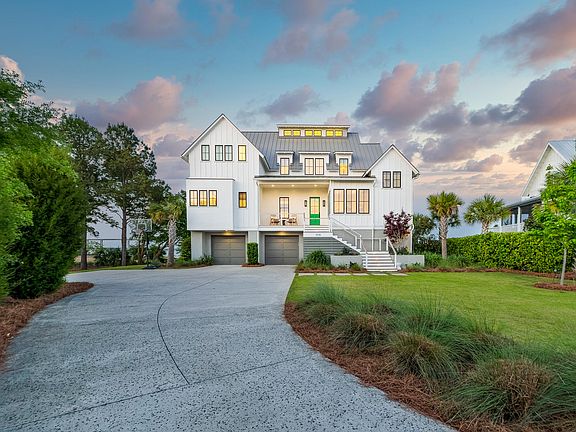 Spectacular 5500 sq ft custom Shelter built and Damien Busillo designed coastal chic home on the Wando. Private deep water dock. This elevated masterpiece boasts a master suite on the main floor and 4 beds, all en-suite on the second floor. Private office, Flex Space, 2 laundry facilities, mega mudroom, media room and elevator make this the perfect oasis. There is a view from every room with 280 degree unobstructed views of the water and marsh. This home has a raised elevation heated Gunite pool/spa, expansive multi- level decking, outdoor gas fireplace and storage galore. On the lowest level enjoy a multi-car garage and temperature controlled space for gym or playroom. Do not miss the private white sand beach and huge yard.