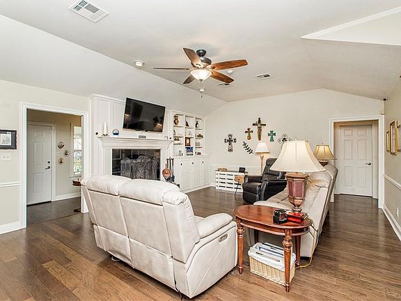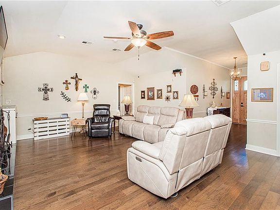 Charming country-style home situated on a 0.80-acre lot in Carlou Estates! This updated 4 bedroom 2.5 bath home with a bonus room in the garage has all the upgrades and space you need! The bonus room has endless possibilities and could be used as a mother-in-law suite, home office, extra bedroom, and/or classroom! You will first be greeted by a custom entry door that opens to a spacious foyer. This open concept floor plan features a wood burning fireplace in the livingroom and wood flooring that flows throughout. The kitchen features many upgrades such as a large center island, custom pantry, wooden cabinetry, stone countertops, stainless steel appliances and a separate breakfast bar to serve guests and family. Whether you want to rock on the front porch, enjoy the evening on the patio or lounge in the sunroom this southern home has it all!