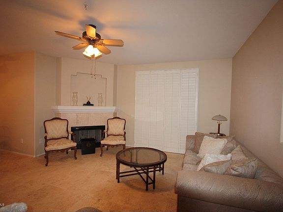 Absolutely gorgeous home with lovely travertine stone floors, fireplace, plantation shutters. Great master bedroom suite with dual sinks/vanities, shower and large walk-in closet. Large kitchen that includes fridge, & stacked washer and dryer. End unit next to tennis courts and very close to the beautiful pool and BBQ area. Pool and spa are heated. Feel like you are on vacation all year. Right across the street from Horizon Park which has a dog park and close to great shopping and restaurants. Quick access to the 101.