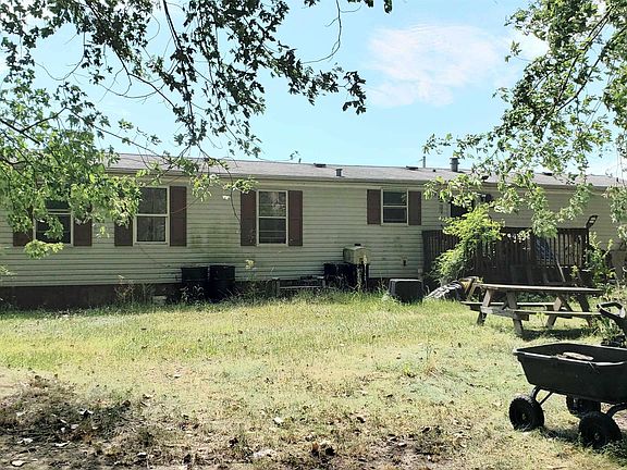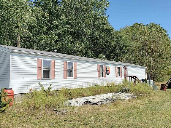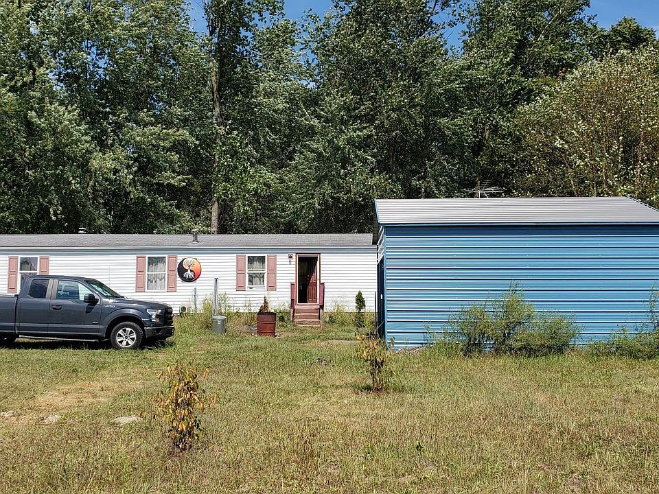 This single-wide home sits on the middle of a 1 acre wide and 5 acres long property. Its has a nice open area in the front of the house and new 2 car garage and nice wooded area in the back side with some nice small sheds. The homes on each side are nice and properties have some nice animals. Cows and horses have large farm areas near it. This property could be a perfect spot to build a new home if desired to have a pleasant large one.