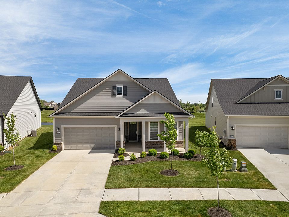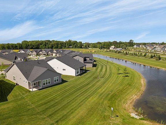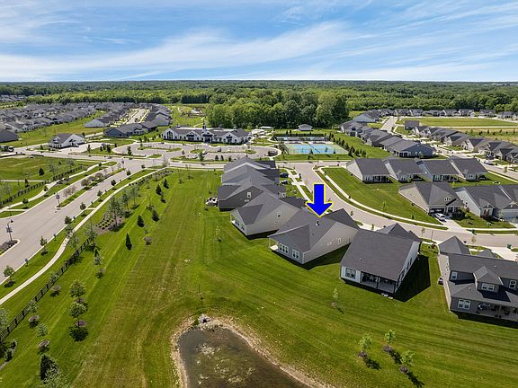 Avoid the wait for a new build and seamlessly transition into this nearly new Belmont Prestige Series home, featuring 3 bedrooms and 2.5 bathrooms, in the resort-style Kimblewick neighborhood by Del Webb. This home has been barely lived in and boasts remarkable upgrades throughout. The location is ideal with rear South-facing views of the pond, privacy berms, and it is just a short stroll away from the exceptional clubhouse that features a long list of amenities. The well-lit kitchen is adorned with tasteful modern features, including an upgraded oversized Bosch induction cooktop, LG refrigerator, double ovens, quartz counters, stainless steel appliances and more. Gather around the gas burning fireplace in the spacious main living area that features a raised 10' tray ceiling. Bask in the natural light in the added sunroom that leads to the outdoor covered patio which offers an unobstructed view of the pond and fountain. Individual baseboard heating with independent zone controls have been incorporated throughout to complement the existing gas furnace, providing extra warmth if necessary. This community offers a resort-style living experience, featuring a 13,000 sq. ft. clubhouse, heated indoor/outdoor pool, fitness center, athletic courts, walking trails dog park and more. Beyond these impressive facilities, Kimblewick is celebrated for its distinctive Del Webb Lifestyle, ensuring that each day unfolds with unique experiences. Rejuvenate in the fitness center or refine your golf skills in the simulation room. Get lost in a captivating book while basking in the poolside sunshine or indulge in laps at the indoor pool during an Indiana winter. Whether you lean towards an active lifestyle or prefer a more laid-back approach, the year-round amenities are designed to cater to everyone. This beautiful home in this desirable community is equipped with a multitude of enhancements, is move-in ready, all that is missing is you!