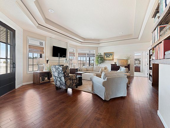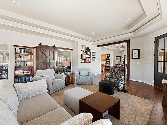 For more information, please contact listing agents Heath Gran 605-209-2052 or Michael Warwick 605-641-2569 with Great Peaks Realty. Immaculate 3-bedroom home resting on 4 acres, quick access to I-90 but offers a remarkable country feel! Beautiful zero-entry, custom built home has an oversized 1,050 sq ft heated garage plus a workshop space, hot & cold-water hookups and storage room. As you step inside from the garage, you will love the mudroom equipped with a dog wash and seating bench with built-in storage. 9 ft ceilings throughout, hardwood floors, and an open kitchen featuring Walnut cabinetry, Quartz countertops, bar sink, porcelain farm sink, under-cabinet lighting, tumbled Marble backsplash and 10 ft center island with built-in Maple cutting board. Tray ceilings highlight the dining room, living room and master bedroom. Walkout to the covered patio to enjoy the privacy of the backyard, plumbed for propane hookup for all your grilling needs, established landscaping plus a fenced-in dog run. Thoughtfully designed layout with the master ensuite with tile master walk-in shower with dual shower heads, soaker tub and his & her walk-in closets! Separate laundry room is equipped with a built-in ironing board, cabinetry and soaker sink. New roof & gutters in 2023. Home is also equipped with a whole house humidifier on furnace. This home presents flawless finishes, presenting endless beauty inside & out! Call today!