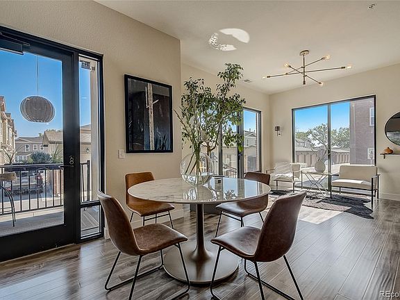 This immaculate, professionally-designed and decorated condo with a private patio invites comfort, and exudes modern elegance. Enjoy gatherings in the generously-sized living/dining area graced by floor to ceiling windows and glass sliding doors that lead out to the rear patio with outdoor wood bar. Other special highlights include ceiling mounted floating shelves, contemporary ceiling lights, floor to ceiling bookshelves, mica/cork accent wallpaper, and a stunning office/ flex space room with large stand alone closet. The gourmet kitchen will inspire your inner chef with its quartz counters, floor to ceiling backsplash, large center island with seating, mixed metal finished and professional grade stainless steel appliances. An elegant bath and chic master bedroom complete the layout of this gorgeous home. You'll love the great community that includes a club house, private pool and is located near trails, golfing and just 10 minutes to Golden.