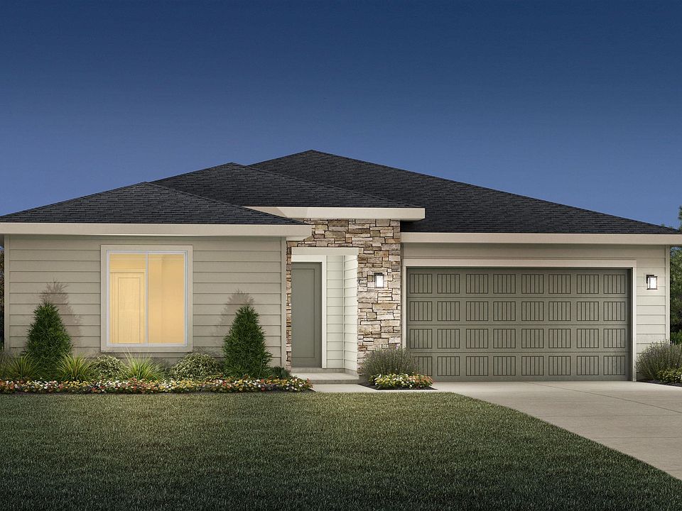 Presold "The Gemma" offering a perfect blend of luxury and functionality. This single-family residence boasts an open floor plan that creates a seamless flow throughout. As soon as guests enter through the welcoming foyer, they are greeted by the spacious great room. Entertaining is made easy with the adjacent casual dining area that opens up to a covered patio, ideal for indoor-outdoor living. As well as a well-appointed kitchen. Retreat to the private primary suite, complete with a luxurious shower in the primary bath and a separate private water closet. Two additional bedrooms provide ample space for family or guests, while the laundry room adds practicality to everyday life. Front and rear landscape included. Home is under construction. Photo similar. BTVAI