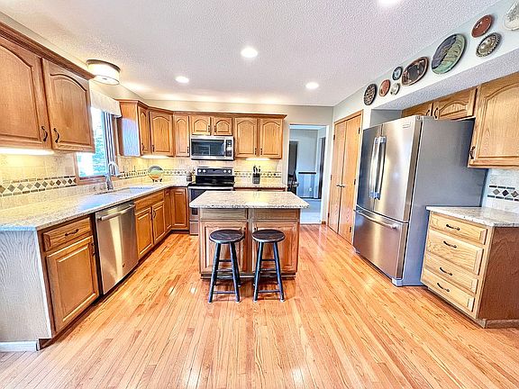 Beautiful two-story Country Club West, Clive home with 5 bedrooms, 2 1/2 bathrooms and over 2900 square feet of living space. Mature trees and landscaping in a great neighborhood close to all the amenities. This home has been immaculately maintained and it is ready for a new family. On the Main floor you can enjoy the living room, dining room, family room with a gas fireplace and custom built-ins. There is also a nice open kitchen with center island includes granite countertops, stone backsplash and stainless-steel appliances. There is a half bath on this level. Upper level has 4 bedrooms. The large master bedroom has vaulted ceiling and a walk-in closet. Master bathroom includes a double vanity with two sinks, new tile flooring and new large shower. There is a second full bath to accommodate the other 3 bedrooms. This level also includes a good-sized laundry room. Lower level was recently updated with new white trim work, white doors and French doors. There is another bedroom with egress window, and a family room with custom built ins and shelves. There is also a workout area, and a large workshop/storage room. Windows, siding, water heater, radon mitigation system, HVAC, and roof have all been added or replaced. Two car garage with 10-foot ceiling and lots of storage shelves. Outside has a large 412 square foot deck with a pergola that leads to a 330 square foot stone patio and landscaping. This wonderful neighborhood is located within walking distance of multiple parks, pickle ball courts and a playground, beautiful trails, baseball fields and Eason Elementary. It is a short drive to all the amenities, shopping, restaurants, and entertainment. Waukee school district.