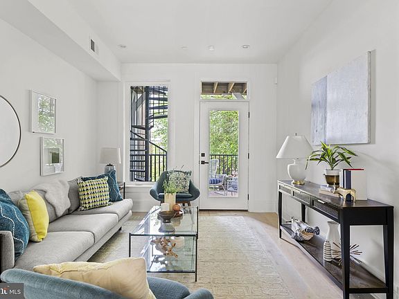 Incredible new boutique building offers two amazing condo conversions, each unit delivering two levels of living. Wide plank floors flow through a spacious open floor plan, between the broad front bay's windows and rear decks on every level. The large living room opens east to a rear deck, while flowing west leads to a streamlined yet spacious kitchen. You’ll find plenty of prep space on its quartz counters. Stainless steel appliances and quality cabinets are framed by modern touches and gleaming finishes. A powder room offers optimal convenience. Two bedrooms and two full baths await upstairs, beyond cable coiled railings. The owner's suite is situated in the shaded rear of the building, delivering quiet and calm with its ensuite bathroom boasting a glass-enclosed step-in shower. The bedroom’s rear deck provides a tree-flanked, serene sitting space beside the spiral stairs, leading to a roof deck. The front of the second level offers a flexible front bedroom that can be used as a guest room or a spacious home office. The current configuration shows the space's flexibility with a full desk, day bed, reading nook, and comfortable closet. The sleeping level's second bathroom sits just outside, next to the full-sized washer-dryer closet. Set in the coveted community of Truxton Circle, this ideal location offers incredible access to a wealth of DC opportunity. Dozens of local eateries are within a few short blocks, including city favorites Big Bear Cafe, The Red Hen, and Dacha Beer Garden. Grocery and pharmacy are also conveniently nearby. There's no better place to branch out into the city as multiple Metro stops are within 0.7 miles, bike shares abound, and auto access to I-395 is an easy four blocks to the south. One off-street parking space is offered for sale. This is urban living at its finest.