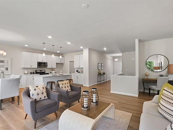 This move-in ready ranch-style home features a split Bedroom, open concept plan with 3 Bedrooms, 2 Bathrooms, main floor Laundry, and 2-car garage. The home opens to a spacious Great Room, sunlit Dining Area, and Kitchen that includes stainless steel appliances, Quartz counter tops and an over-sized island with additional seating. The Owners' Suite is the perfect retreat, featuring a spacious Walk-In Closet and private Owner’s Bath with a double bowl vanity and separate bath tub and shower. Upgraded options include 9' ceilings, a gas fireplace, and a 3 piece plumbing rough-in located in the walkout lower level. All Rolwes Company homes include enclosed soffits and fascia, integrated PestShield pest control system, fully sodded yards, and a landscape package. Pictures may vary from actual home constructed. See Sales Representative for all the included features of this home and community.