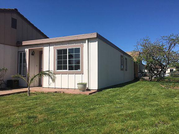 Fantastic 3BR 2BA starter home conveniently located near shopping, parks, schools, and Highway access. Corner lot with fenced front & side yard, mature fruit tree (apple), and a cozy courtyard allowing lots of natural light and fresh air into the house. Spacious living room offers laminated wood flooring, a brick fireplace, and sliding glass doors leading to the courtyard patio. Dining area in kitchen. Three carpeted bedrooms, including a master suite. Two car side-by-side garage. Beautiful stamped driveway for additional parking. Nice open area in the neighborhood park directly across the street.