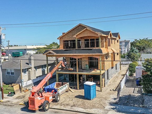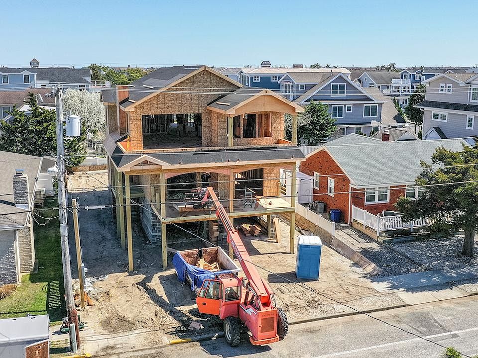 BRAND NEW UPSIDE DOWN HOME THREE BLOCKS TO BEACH AND A SHORT WALK TO TOWN. Unique floorplan allows 6 bedrooms, 5.5 baths and pool. First floor has 2 bedrooms, each with en-suite bath; 2 bedrooms accessing a hall bath; laundry room and a family room with wet bar overlooking and in-ground, heated swimming pool. Two west bedrooms access an expansive, first floor covered deck. Second floor has a fabulous, vaulted great room with fireplace, large dining area with window seat and a wonderful kitchen with center island, large pantry, stone tops and high end appliances. The great room flows to a western exposed, very spacious sun deck. Second floor also has a powder room servicing the great room, fifth bedroom suite with private bath and a wonderful primary bedroom with walk in closet and private, en suite bath. The exceptional amenity in this home is the three car garage allowing expansive storage and a great place to house your sports car and street legal golf cart. A ground level cabana with roll down shutter overlooks the fabulous new, heated swimming pool. The exterior is a painted wood shingle siding and there are hardwood floors throughout. Completion slated for fourth quarter, 2022.