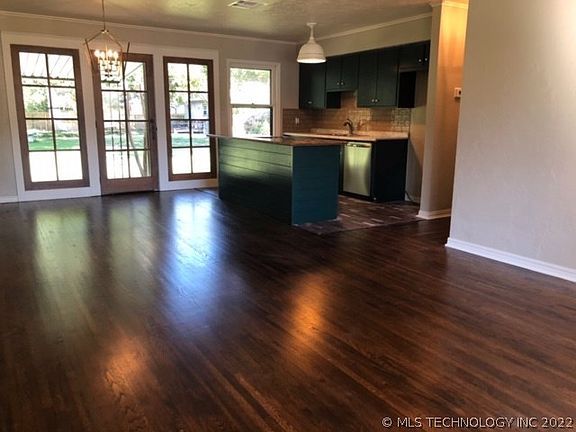 Darling Brookside bungalow. 3/1. Completely re done-including new roof & HVAC! Open floor plan includes kitchen/family room/dining. Kitchen has center island & new stainless appliances. Refinished hardwoods throughout. Beautiful light fixtures. Remodeled bath with new vanity. New 3 paneled French door leads to covered back patio, which leads to a generous size back yard. Addition of super cute laundry room, The LOCATION, handy to everything, especially the riverfront, Gathering Place, Brookside eateries