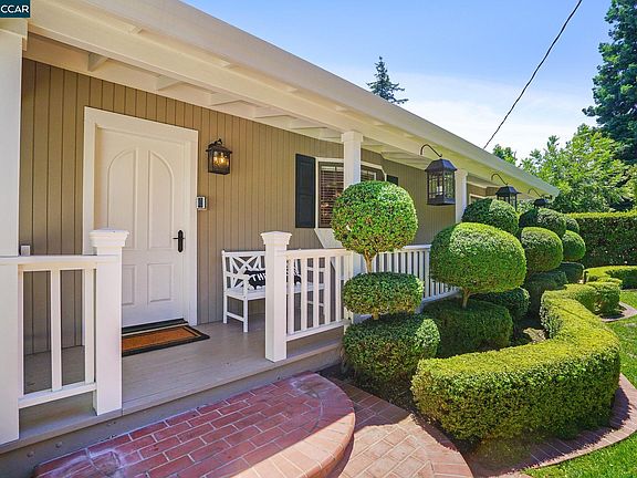 Carmel style charmer in Westside Alamo. This single story home is meticulously cared for down to its storybook-sweet topiaries in the front and back landscaping. Step inside to the welcoming great room that is bathed in natural light. The home has beautiful wood floors and the large windows look out to the back garden. The primary retreat is separate from the other two bedrooms, offering a private and tranquil space to relax. The front porch beckons you to sit and linger with a beverage and take in the surrounding beauty. Close proximity to the Iron Horse Trail, the Las Trampas ridge, award winning schools and downtown shopping centers. Welcome home!