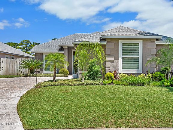 Welcome Home!! This home has curb appeal, creative interior & exterior design in prime location with back views of ABCC golf course & canal. Convenient to ocean, beach, Beaches Town Center, highways, hospitals, Mayport Naval Station, Intracoastal, St. John's Ferry & churches. Entry into foyer presents beautifully appointed natural Travertine Stone throughout living areas. The kitchen is latest in design with custom cabinetry, quartz countertops, porcelain farm sink & SS appliances. Bathrooms have custom granite countertops, newer toilets & custom sinks/facets; Primary bath has double sinks, water closet & walk in closet. BR2 has walk in closet. Barn doors added to Sunroom & guest suite for privacy. Sunroom design wooden-peaked ceiling & multiple windows for spectacular views. 2 car garage with attic ladder, utility sink, cabinetry with remotes. Custom landscaping includes palms & tropical plants. Side yard has exterior shower (H/C) for use after beach/yard time.
