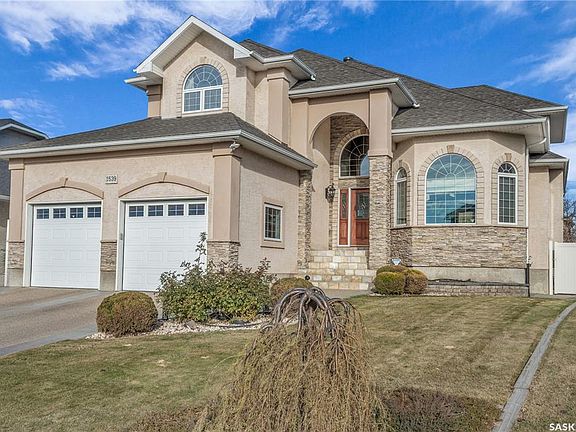 Welcome to this exceptional custom-built Yakobovich two-storey home, offering over 2,800 sq. ft. of meticulously designed living space in the sought-after Lakeridge neighborhood of Regina. With 4 bedrooms, 4 bathrooms, and an array of luxurious features, this home is perfect for families seeking both elegance and comfort. Upon entering, you are greeted by a grand entryway featuring a curved staircase, setting the tone for the sophistication found throughout the home. The main floor boasts a formal living and dining room, ideal for entertaining, along with a dedicated office space for those who work from home. The open-concept family room and dining area, situated off the beautifully appointed kitchen, create a warm and inviting atmosphere for everyday living. The kitchen is a chef’s dream, with ample cabinetry, modern appliances, and heated flooring for added comfort. The laundry room is conveniently located on the main floor for easy access. Upstairs, the home features three spacious bedrooms, including a luxurious primary suite with a spa-like ensuite, complete with heated floors for ultimate relaxation. The additional bedrooms are generously sized, providing plenty of space for family members or guests. The fully developed basement includes a fourth bedroom, an additional bathroom, and a versatile recreation area. Designed for durability and peace of mind, the basement floor is heated and supported by engineered piles. Outside, the professionally landscaped yard is a true masterpiece, featuring extensive stonework that enhances the home’s curb appeal and provides a serene outdoor retreat. This stunning home combines quality craftsmanship with modern luxury in one of Regina’s most desirable communities. Don't miss your opportunity to own this incredible property—schedule your private viewing today!