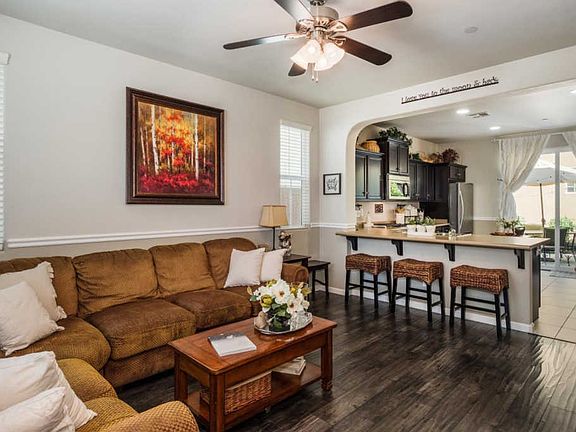 Don't miss this beautifully maintained home located in Harlan Ranch. The downstairs of this home has an open floor plan perfect to entertain family or friends. Enter in to the living room with updated laminate floors. The kitchen has a gas stove, breakfast bar, microwave, dishwasher, and refrigerator. There is a half bath, pantry, and coat closet downstairs. All three bedrooms (with ceiling fans) are located upstairs, along with hall bath, and laundry (washer and dryer included). The master bedroom has two closets and an attached bath. The patio is on the east side of the home, perfectly shaded to enjoy to an afternoon or evening outside. Per seller, home is very energy efficient, the upstairs and downstairs have a split HVAC control, allowing them to be set differently.