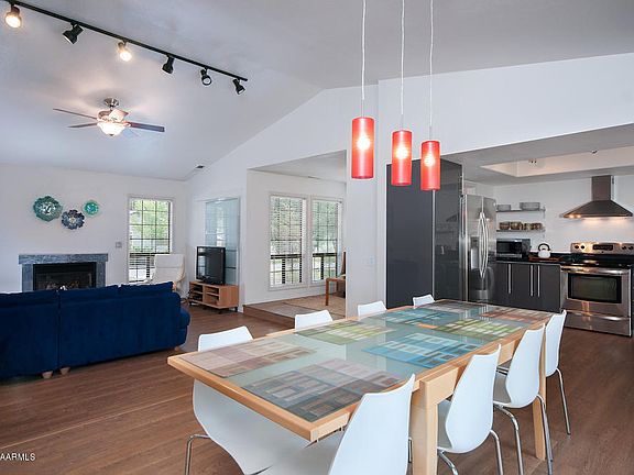 A WOW Home! Open, bright and beautifully remodeled. stunning kitchen with granite counters, stainless appliance package, track lighting, cabinets and garden window. Open dining area to kitchen and great room. The great room features cathedral ceiling, gas fireplace, ceiling fan. Small den/office/reading room is adjacent to the great room. The main floor master with sliding door to back patio features a beautiful bath with vessel sinks and travertine shower. There are 3 more bedrooms (1 on main floor and 2 upstairs). Additionally, upstairs is an office/study area and another large bath. All baths have decorative vessel sinks and travertine surrounds. The large fenced back yard features a large patio for entertaining and artificial turf. SELLER IS A LICENSED AGENT IN AZ.