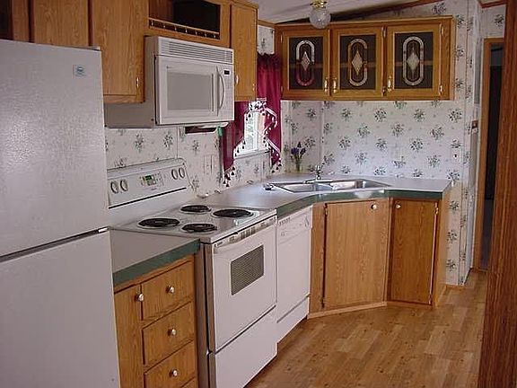 Adorable, neat, sparkling clean & like new inside & out. Converted to real estate for tax purposes this manufactured home,has a perm brick foundation & is perfectly placed on its 1.41 ac lot. Split bedroom floor plan, private master w/tub, shower & walk-in. Bright sunny kitchen, dining alcove & lg living room. Nice deck on rear. 2 car gar, gravel drive & walks. New septic sys & new well Owner says he wants to sell and he will consider all offers!!!