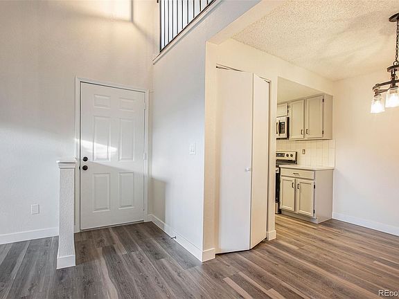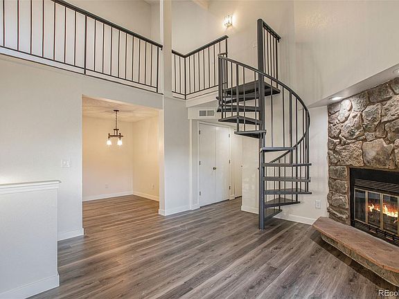 A wonderful opportunity to own this condo which has been freshly painted and new vinyl plank flooring, new carpeting and new light fixtures. Enter into a bright living room layout w/ high vaulted ceilings. A spiral staircase stretches to the loft area revealing large additional living area or home. Enjoy newer SS appliances (new stove as of 11/19th), new quartz countertop and kitchen, new bath vanity. Get comfortable in front of the fireplace while watching the sun set. Access to a covered deck with a storage locker from the living room. Please know that the parking lot has been resurfaced. Next year repairs will be made to the exterior of buildings. Blocks from shopping, Village Green Park and Rec Center, Kingsborough Park, and just 3 minutes to I-225! Less than 15 mins to DTC! By the way, brand new Furnace and Air Conditioner as of October 28, 2022. Seller has never lived in the condo and so is being so as is. However, lots of remodeling has been done. No more than 3 pets per unit. Investors are okay. Leases must be at least 30 days