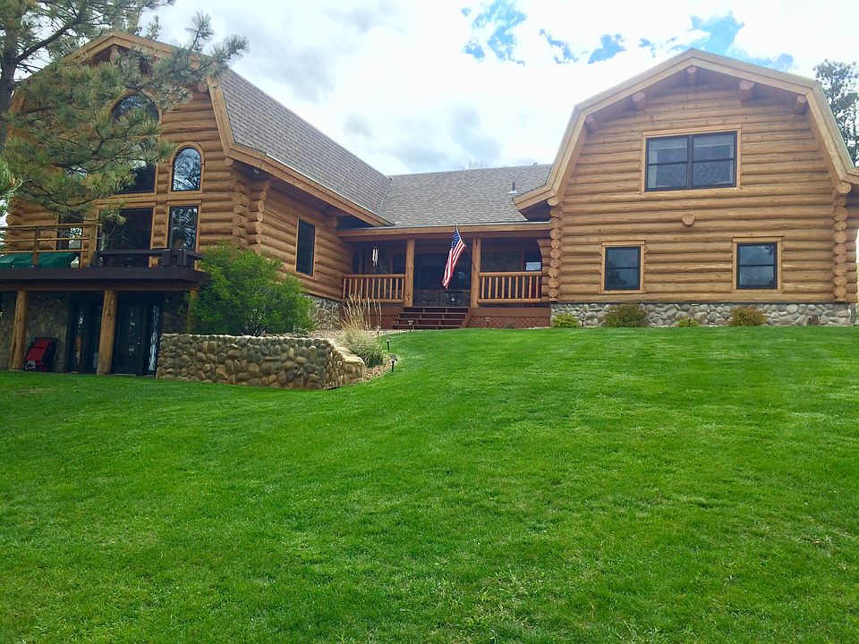 CAPTIVATING ON 12.2 ACRES! The extraordinary log style home boasts 4620 sq. ft. and is nestled in the pines on 12.2 acres of beautiful horse property. With 5 bedrooms, 3.5 bathrooms, 2 car-garage, vaulted ceilings, gorgeous hardwood floors plus heated tile flooring, wood burning stone fireplace, huge windows that bring in tons of natural light, plenty of storage, walk-out basement, large deck, heated sidewalks and patio, RV parking, sprinkler system, new landscaping, new roof, new fences, plus many more amazing features you will want to make this home yours!