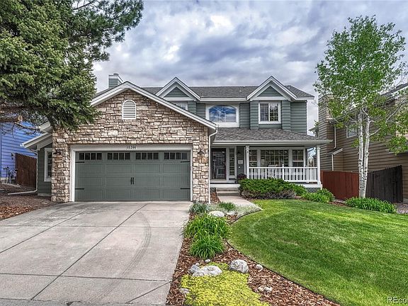 Step into your Stonegate sanctuary! Beautifully maintained and stunningly upgraded by the original owners, this home radiates style and meticulous care throughout. Real hardwood floors sprawl throughout, leading you from the elegant formal living and dining areas to a kitchen that received a stylish makeover in 2021. KITCHEN: Extensive remodel includes white cabinetry, center island with storage, SS appliances, granite counter, large picture window above sink with view to backyard, custom subway tile backsplash and new lighting. The kitchen seamlessly flows into an inviting eat-in space. FAMILY ROOM: Stylishly comfortable with shiplap focal wall, built-ins, gas fireplace with custom tile surround FORMAL LIVING/DINING: Entertaining is a breeze with both dining and living room spaces PRIMARY BR/BATH: Ascend upstairs to discover a quaint loft area and a primary bedroom complete with a recently renovation (2021) ensuite luxurious 5-piece bath and large walk-in closet. Bath features modern farmhouse updates ADDITIONAL BEDROOMS: Upstairs features two generously sized bedrooms sharing a chic full bathroom LAUNDRY: Oversized laundry/mudroom with cabinetry, deep sink and backyard access FINISHED BASEMENT: With a 3/4 bathroom, wet bar, and generous storage room (potential future space for fitness, office, etc) BACKYARD OASIS: Manicured with mature landscaping, garden areas and stamped concrete patio. LOCATION: Prime! Close proximity to elementary school and community pool HOA: Sought after Stonegate Community includes a community pool, tennis courts, miles of hiking/biking trails, trash & recycling. HOME UPDATES: Oh, they abound! Kitchen Renovation (2021). New Carpeting. New Roof. Interior & Exterior Paint (2022). New Windows (2019/2024). New Garage Door and Openers (2023). Stamped Concrete Patio (2023). New HVAC (2019). HOME EXTRAS: Front Porch. Abundance of Storage. Updated Lighting Throughout. New Baseboards and Trim. Low HOA Dues. Easy access to I-25 &E-470. Welcome home!