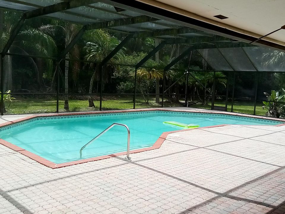 One acre pool home. No HOA. Nestled in the calm suburban neighborhood known as the Palm Beach Country Estates in the heart of Palm Beach Gardens, this is a one story, single family home with 4 bedrooms and 2 full bathrooms. Large master bedroom with two closets. Clean white tiles run all throughout the house. It has a full size garage and over an acre of land! A secluded screen enclosed pool, outdoor shower, and back porch can be found just a step out the back sliding glass door. Brand new roof and fresh exterior paint. This house is located very close to the park. Pets are allowed. Furniture and laundry unit is optional. Good credit, trustworthy background check and a clean criminal history is required. No smoking allowed