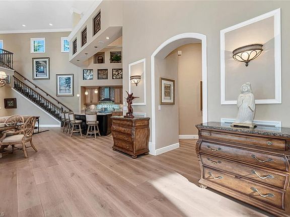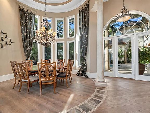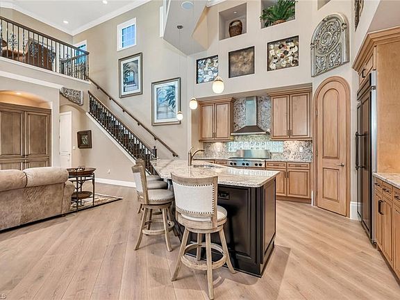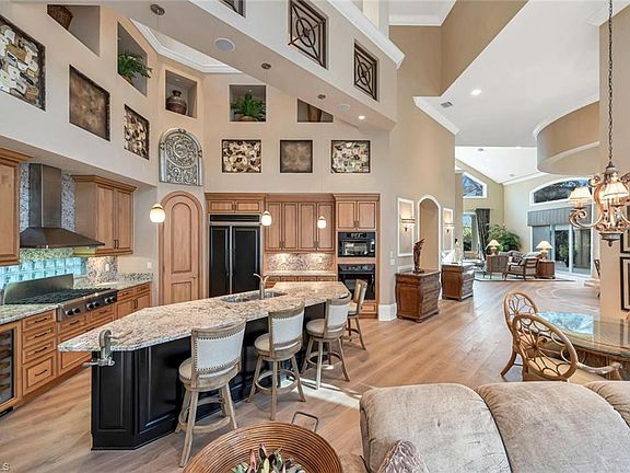 Golf membership available with home purchase! Stunning, two-story residence in luxurious Milan in Mediterra is immaculate. This spectacular property has unsurpassed golf course views while being surrounded by lush landscaping in a private outdoor oasis. The outstanding residence features expansive outdoor living space complete with full outdoor kitchen, fireplace and resort-style pool and spa. Pocketing sliding doors allow for graceful flow from the exterior to the interior living area, which showcases soaring ceilings, plentiful windows providing an abundance of natural light, gorgeous wood flooring, modern design and decor and high-end finishes throughout. Guests will feel right at home in their private quarters complete with wet bar. Entertaining is a breeze with a chef's kitchen featuring high-end appliances and walk-in pantry. The sought after residence comes complete with golf membership eligibility and is located in the award-winning community of Mediterra, featuring a private club with two world-class Tom Fazio golf courses, a private beach club, tennis, restaurant and just a short distance to Southwest Florida gorgeous white sand beaches.