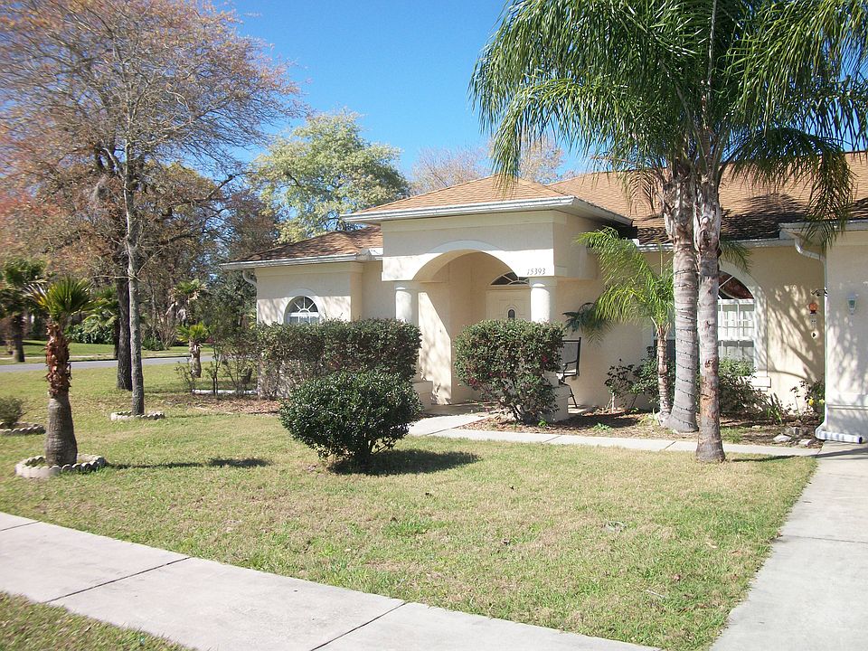 Elegant move in ready home! Formal living & dining room w/ soaring ceilings. Spacious kitchen w/ oak cabinets opens up to the large family room. Generous sized master bedroom w/ sliders to the lanai, his/her closets, plant shelves. Stunning master bathroom, his/her sinks, walk in shower, garden tub! Split floor plan offers privacy, two bedrooms and hall bath on the other side of the home. Ceiling fans in every room, inside laundry room, oversized garage with pull down stairs, storage shelves, sliding screen door. Sunny lanai great for BBQ's. Low HOA fees, No CDD fees. Great location close to the expressway.