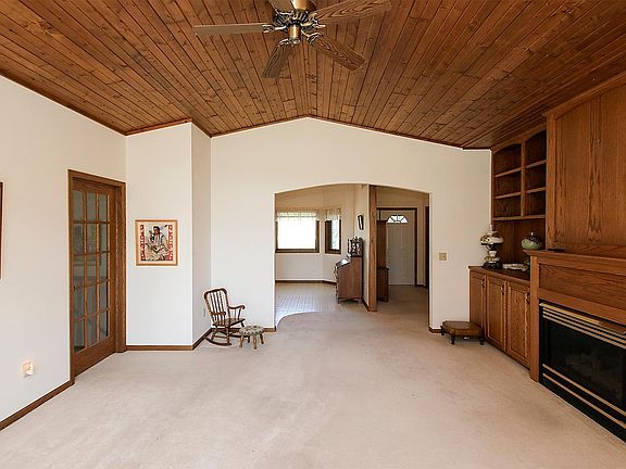 Just outside of Hutchinson is where this large rambler is located. Features gas burning fireplace with many built ins in living room, primary bedroom with bath and walkin closet, eat in kitchen with many cabinets, main floor laundry and den. Full basement ready to be finished for additional living space. Front porch and a deck overlooking back yard. Double attached garage. New shingles in 2022. All on 2.2 acres!