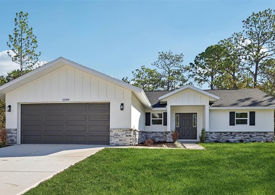 One or more photo(s) has been virtually staged. ****Seller offering $5,000 credit toward buyer’s closing costs.*** Discover this beautifully crafted move-in ready new construction home by Chouinard Builders LLC, thoughtfully designed with comfort, style, and functionality in mind. Located in the desirable Royal Highlands area, this home offers peaceful and affordable Florida living with no flood insurance required, no HOA, and no CDD fees. Built by a trusted, family-owned company with over 40 years of experience, it features hurricane-rated impact windows, doors, and garage door, a WiFi-enabled garage opener, and a 1 year builder-backed home warranty for lasting peace of mind. Set on nearly half an acre in a non-flood zone, the property allows you to enjoy outdoor living with no restrictions. Inside, the open-concept layout offers nearly 1,600 sq. ft. of thoughtfully designed space with cathedral ceilings in the main living area, a split-bedroom floor plan for added privacy, and a luxurious owner’s suite featuring dual vanities, a large walk-in closet, and a floor-toceiling tiled shower. The home is finished with durable luxury vinyl plank flooring for style and easy maintenance, modern bathrooms with premium finishes, and a chef-inspired kitchen complete with white shaker soft-close cabinetry, quartz countertops, stainless steel appliances, a spacious island, and a walk-in pantry. Additional highlights include a large laundry room with a utility sink, an energy-efficient 15 SEER HVAC system with programmable thermostat, a reliable 40-gallon water heater, and septic and well utilities—meaning no city water or sewer bills. Conveniently located near US Hwy 19 and the Suncoast Parkway, you’ll be just minutes from shopping, dining, hospitals, and recreation, including the upcoming lagoon, Weeki Wachee Springs and Buccaneer Bay, kayaking, hiking trails, and the peaceful shores of Pine Island Beach. With low homeowners insurance and $0 down for qualified buyers using USDA financing, this home is the perfect blend of modern elegance, energy efficiency, and an unbeatable location—don’t miss your chance to make it yours.