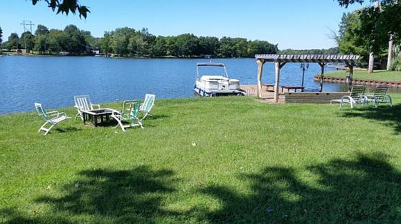 Nice ranch style home on the lake. Home features - 3 BR, den (used as 4th BR currently), 2 baths, fireplace, enclosed front porch, and 4 car attached garage with work bench area & attic access. Per Seller -- improvements since they purchased: roof 6/2017 (Quality 1st), kitchen/bath flooring, septic, dock, pergola, and lake retaining wall (approx. 220' feet of lake frontage per seller). Boat may be negotiable. Current $20.00 per year City boat dock fee. See city/plat for easement info along the lake frontage. New water service was installed 4-12-2017. Owners believe previous owner had cap put on chimney/fireplace. They have not used fireplace.... Please do NOT lock the inside garage door. thank you...