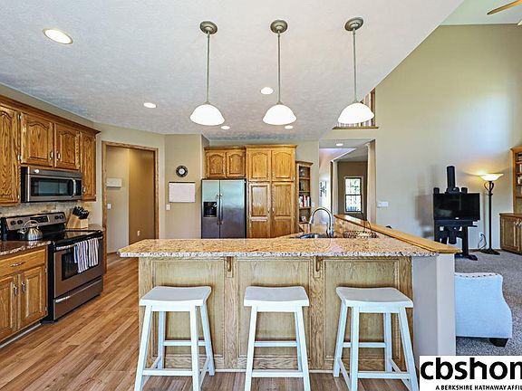Best of both worlds! Small town acreage living on the door step of Omaha in Bennington School Dist. Lower taxes! This fabulous 1.5 story situated on 2.58 acres features an above ground pool & out building! Enjoy the LR w/ soaring ceilings & FP surrounded by built ins. Kit has SS appliances & granite countertops. Large main flr master w/ walk in closet & a full bth. The finished walkout LL includes additional living space, 3/4 bath, bedrooms & wet bar. Covered front porch, deck, patio. Cul-de-sac