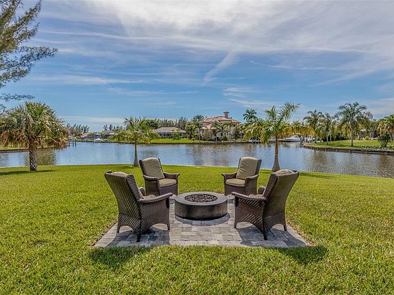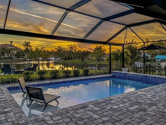 MAGNIFICENT Luke Brothers Custom Home on Sailboat Waterfront Tip Lot! Exquisitely Designed and Masterfully Built, this STUNNING property offers nearly 3300 Square Feet of Indoor and Outdoor living space with Tile Roof, Impact Doors & Windows, Heated Salt-Water Pool including Sun Shelf, Waterfall, Brilliant Azure Blue Tile, LED Lighting, and signature Luke Brothers Fire Feature. Travel to exclusive destinations from your backyard, or live in the lap of LUXURY right at home. Situated on a premium and highly sought after SouthWest facing tip lot with 166' of Concrete Seawall and NO FIXED BRIDGES to the Gulf of Mexico, this exclusive location provides unobstructed views of the 4-way intersecting canals and spectacular sunsets that will be the canvas for family photos for years to come! This extraordinary open-concept, split-bedroom custom plan is designed with entertaining in mind, and is well-equipped for culinary success with a grand Center Island set with marble top, book nook, storage cabinets below counter stool seating, farmhouse sink with disposal, pull out bins and dishwasher. This DREAM KITCHEN also boasts custom solid wood cabinets with 42" uppers and lit display cabinets with glass doors above, granite counters, beveled glass tile backsplash, soft close doors and drawers with beeswax polished iron Bean Pull Handles imported from England, as well as dimmable under-and-over cabinet lighting to enhance your space. Gourmet appliances such as Electrolux professional side by side refrigerator/freezer, smart slide-in Induction Cooktop with true European Convection Double Ovens, and GE under counter microwave drawer make cooking and baking a breeze. There is a separate Espresso/Coffee Bar, etched frosted glass pantry door to a spacious Walk-In Pantry Closet, and an option to convert your cooktop to gas, with a pre-fitted line already in place. You can serve barbecue or rotisserie dishes prepared in your fully equipped OUTDOOR KITCHEN with gas grill/rotisserie, vented range hood, wine fridge and wet bar. Panoramic sliders fully pocket to create a seamless indoor-outdoor experience. The Owner's En-Suite offers full light French Doors opening to the Lanai, coffered ceiling with crown and recessed lights, wood plantation shutters, wall mount for your TV, generous walk-in closet, and a Spa-Inspired Luxurious Bath, with dual sinks, granite counters, backlit LED mirrors, and an enticing Claw-Foot Tub. Guests will be comfortable in their own spacious room with shutters, ceiling fan, walk-in closet, and porcelain tile floors. The hall bath offers direct access to the Pool. Perhaps the hidden gem of the home is the artist's retreat, Bedroom 3, designed with a custom 6'x6' picture window overlooking the waterfront where inspiration and creativity can flow. With pocketing french doors and ample natural light, this amazing space provides an oasis for hours of contemplation or meditation. The bedroom closet was converted to built-in wood shelving to accommodate the needs of an artist, and will serve equally well as a Library or Home Office space. The Laundry Room is well-appointed with pedestal Washer and Dryer, sink, folding shelf with space for baskets, cabinets with Crown adding organization and beauty, and window to add natural light! Direct access to the 25' deep 2 ½ car Garage with room for workshop and toys. The distinguished look and feel of this Parade of Homes Winning builder to the discerning, and a list of special features is available.