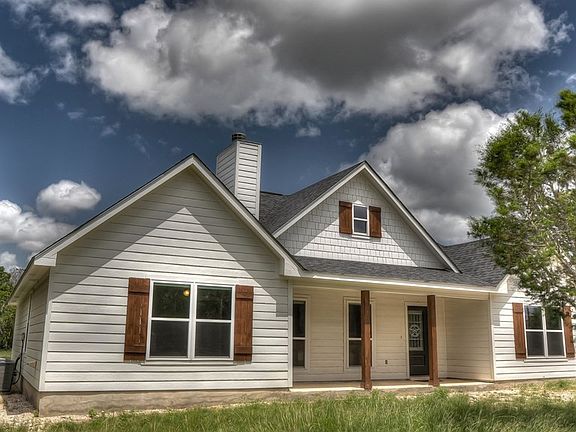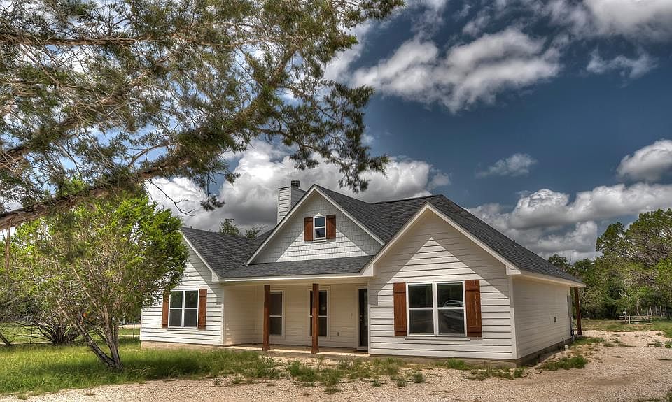 Discover this stunning, recently built home nestled on 1.77 acres within the private, gated Twin Forks Estates community, boasting Frio River access just steps from your back door! This thoughtfully designed 4-bedroom, 4.5-bathroom home features a split floorplan and an ensuite bathroom for each bedroom, providing over 1800 square feet of spacious living area. The bedrooms are generously sized, each equipped with closets, while the primary bathroom offers a dual vanity, a glass-door tiled shower, and a walk-in closet. The living room showcases a vaulted ceiling and a wood-burning fireplace, while the kitchen features stainless steel appliances and quartz countertops. A half bathroom is conveniently located in the laundry/mud room, with easy access inside the back door. Outside, you'll find a covered back porch, a large backyard, and an RV hookup. Take a short walk from the backyard to the Frio River for a swim or a fishing trip, and enjoy 35 acres of nature preserve for exclusive use by Twin Forks owners, perfect for hiking or ATV rides.