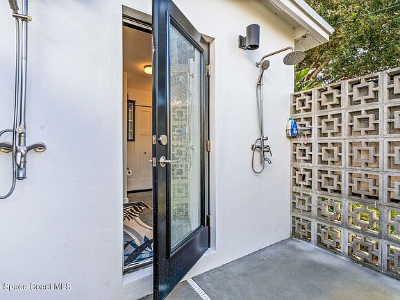 Artfully restored mid-century modern home blending timeless design with modern updates, perfect for downsizers, snowbirds, or STR investors. A newer standing seam white metal roof, impact windows/doors, and rare A-1 insurance rating provide peace of mind and lower insurance costs. Inside, polished concrete floors, vintage-inspired lighting, and custom trim showcase the professional remodel. The chef's kitchen features quartz counters, high-end appliances, Thomasville cabinetry, and a wine cooler drawer. The extended primary suite offers four closets, Indow window inserts for privacy/noise reduction, and a luxurious new bath with double vanities and oversized linen storage. The AC'd guest room adds flexible space for guests or office. Outdoors, enjoy a fenced backyard with a spa-style double shower. With updated systems, full storm protection, and stylish finishes throughout, this home offers low-maintenance living in a prime Vero Beach location.