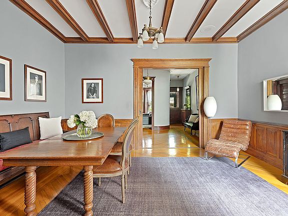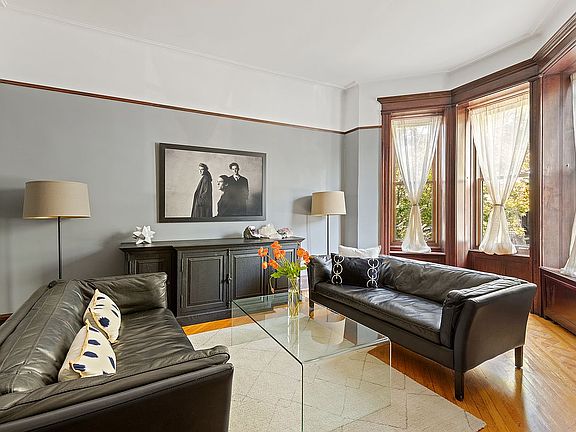 This is a rare opportunity to own a beautifully renovated barrel front limestone townhouse that has custom work across three full floors. These thoughtful upgrades blend beautifully with the prewar details throughout. Lovingly maintained original details abound, including gorgeous hardwood floors (with inlays), original pocket doors, wainscoting, and beamed ceilings.