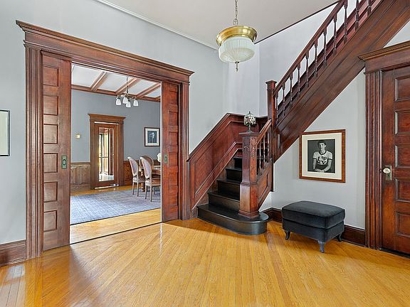 Upon entry you are greeted with original gorgeous woodwork at every turn, high ceilings, original restored beveled glass entry door and a layout that lends itself to entertaining and comfortable living.