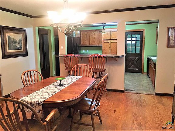 Charming home with lots of character secluded, and nestled among the beautiful shade trees on two acres right in the heart of town. Kitchen has updated appliances and tile flooring, living and dining, as well as hallway and all bedrooms downstairs have beautiful hardwood floors. Living room has fireplace with gas logs. One bedroom downstairs has a faux brick fireplace with gas. Bedrooms are large with spacious closets. The downstairs bath is large, as well. Two bedrooms and a bath upstairs. There are two outbuildings in back. Covered front porch, as well as open deck in back. Sit and relax on the deck looking at country views, but with convenience of being in town!