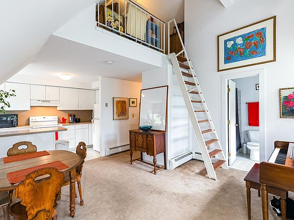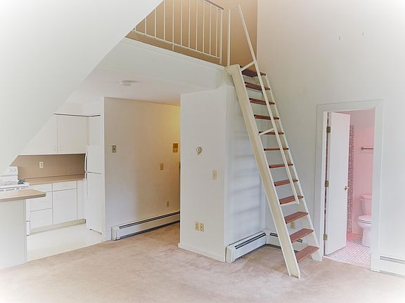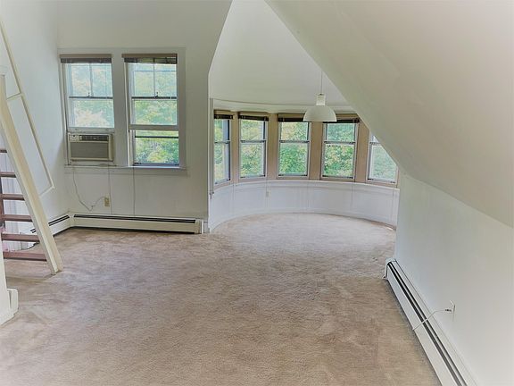 The condo is located at the top floor tower of this royalty like historic Smith Brothers castle which is admired as one of the Poughkeepsie's finest architectures. This property is a beautifully-renovated South Side mansion featuring an impressive front entryway, grand foyer, and unique touches throughout . It is truly a rare opportunity to live in the one-of-a-kind condo in this spectacular historic mansion. This well-loved unit has floor carpet, high ceilings, spacious closet, lovely kitchen, bath and a sweet loft as bedroom or study den. This light filled and cozy unit boasts the features a renter could long for. The many east and south faced windows let in ample sunshine, and the upstairs loft is perfect for an office space. There is a scenic picnic area, visitor parking, and 1 parking space for this unit outside. Fixtures, finishes and surface materials are classy for both bath and kitchen. Heat, Water, Sewer, Garbage, and Snow removal are included in the rent! Less than 5 minutes to Route 9, Metro North, Vassar Hospital, and numerous stores & restaurants - convenience by definition! This building also features a large storage area and resident laundry area in the secured basement just steps from the front door. An interview by owner and board is required. This is an unfurnished condo, the images with decorations and furniture are for illustration only. Water, heat, parking, sewer and garbage are included.