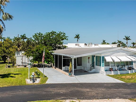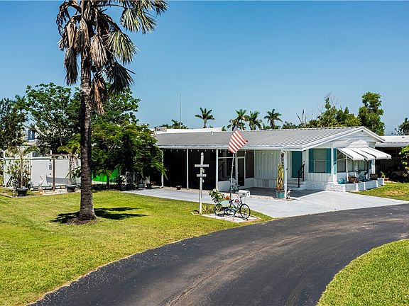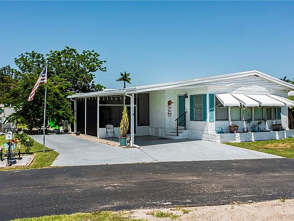 If you want to be near the beach but not on it This home is the perfect spot. This beautiful remodeled home sits on the largest lot and is one of the largest floor plans in Thunderbird a 55+ community. The home boosts 1426 Sq Ft and features 2 BR, 2baths. The home did have minimal water intrusion from Ian. The home was immediately remediated with all new insulation, thickest Pergeut flooring throughout, New baseboards, door jams, shower and new miracle method bath and shower, new dishwasher, Custom cabinetry in kitchen and bathrooms, New A/C and thermometer. the open floor plan is great for entertaining. Beautiful french doors lead out to the enclosed A/C porch that can be used for a den/study or another bedroom. The kitchen has granite counter tops. So much has been remodeled in this home it's like getting a brand new home. There is also a work shed attached to the home with a washer and dryer hookup. Great for storage or work area. The large yard is great for entertaining or just relaxing with lots of room for privacy. Don't miss out on this great home. Come live by the beach where it is affordable.