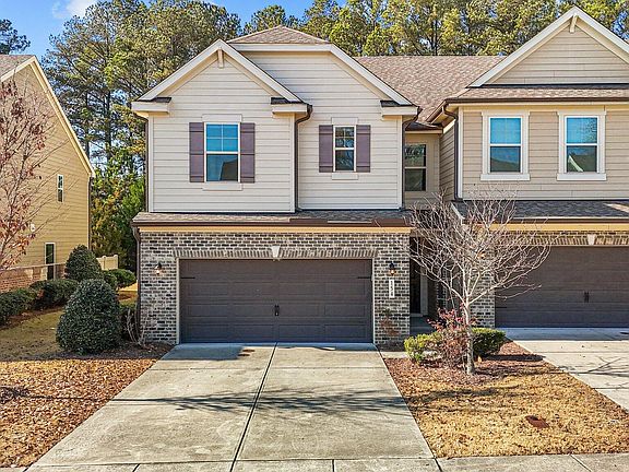 Beautiful East-Facing End Unit - Spacious & Upgraded! ACT NOW-Ask about buyer savings! Don't miss this stunning 2-story end-unit townhome in a prime location, featuring exceptional upgrades and modern comforts. Investor-friendly and move-in ready! This highly sought-after Gardenia floor plan boasts gorgeous hardwood flooring throughout the main level, a gourmet kitchen with level 4 granite countertops, upgraded cabinetry, an oversized center island, and an expansive walk-in pantry. The open-concept design seamlessly connects the kitchen to the dining and living areas, anchored by a cozy gas fireplace—perfect for both relaxing and entertaining. A sliding glass door leads to a private, wooded backyard, offering a peaceful retreat with serene views. Upstairs, a versatile loft/office space provides flexibility for work or play. The spacious owner's suite is a true sanctuary, featuring a cozy sitting area, large walk-in closet, and a luxurious en-suite bath with a walk-in shower with bench seating and a dual vanity. Two additional well-appointed bedrooms, both with walk-in closets, share a full bath, while a convenient walk-in laundry room enhances functionality. Additional upgrades include brand-new carpets, fresh paint, a 2024 water heater, epoxy-finished garage floors, and a smart Nest thermostat on both floors for ultimate comfort. Enjoy access to fantastic community amenities, including a clubhouse and swimming pool, and benefit from being zoned for highly rated Wake County schools. Conveniently located near RTP, RDU, major retailers, and top dining spots, this home also offers easy access to Sears Farm and Thomas Brooks Park—both within walking distance. This home combines modern upgrades, convenience, and unbeatable value in one of the area's most desirable locations. Schedule your showing today!