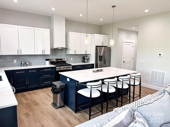 Clean, bright, shiny and new! With year-round mountain views and a full second living area downstairs, this custom-built home offers modern design and comfort 4 minutes from downtown Weaverville! Open floor plan with a chef’s kitchen, light-filled living area augmented by the mountain vistas, a fireplace, a private home office, and a primary suite. The fully finished lower level features its own full kitchen, living room, two bedrooms (split plan) and a second laundry area perfect for guests, extended family, or multi-generational living! Ten-foot high ceilings throughout, expansive kitchen, an incredible amount of storage, a low-maintenance yard... This is the one you've been looking for!
