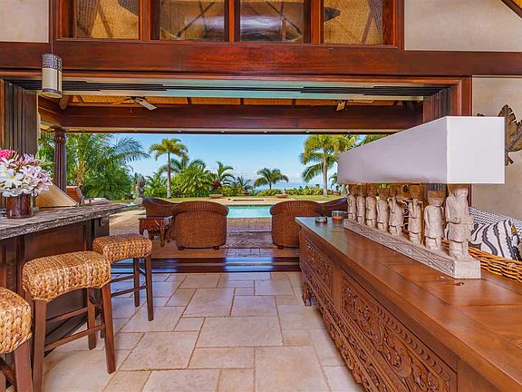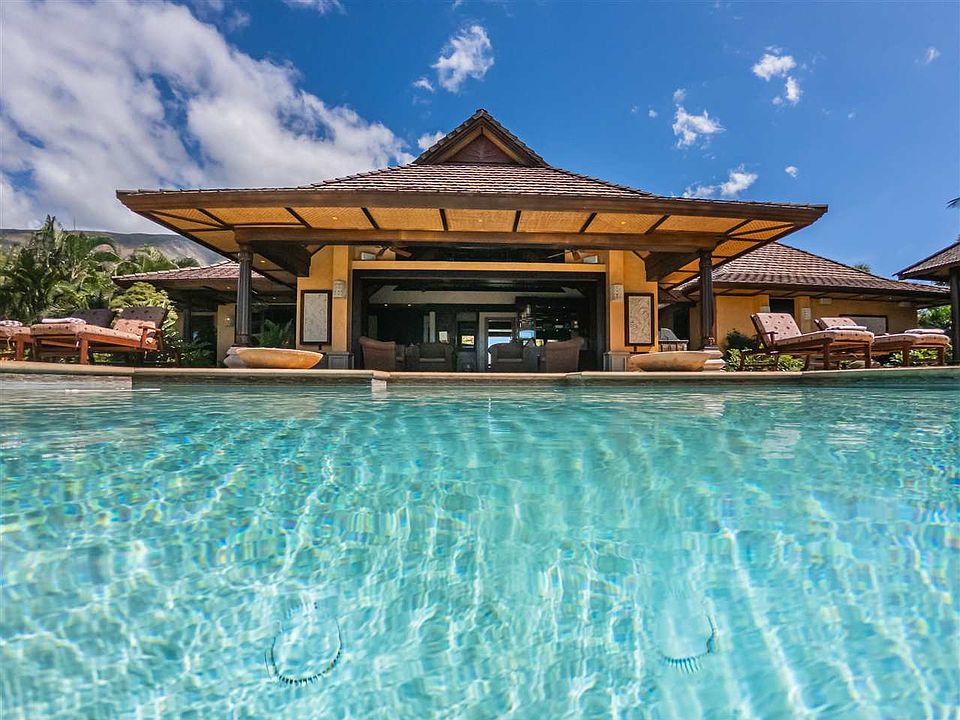 Exotic Balinese Estate with majestic oceanviews and lush tropical landscaping will assure unrivaled bliss in your own private paradise. This home has been named one of the most romantic villas on Maui - an art exhibit with attention to detail throughout. Fully retractable doors in the kitchen and living room melt away the barrier between indoor and outdoor living giving you effortless enjoyment of the property's beautiful natural surroundings. Conveniently laid out on a single floor, centered on a large pool and spa terrace that includes spaces for dining in the shade or lounging in the sun. The home is saturated in fine custom-fit details, including carved rosewood doors, stone floors, teak and marble accents that add to the architectural elements of this home. Furnishings are carefully selected to reflect traditional island aesthetics, while the earthy color palette and woven rattan ceilings carry you back to a bygone era of Balinese and Hawaiian life. Custom wood cabinets and native carvings frame modern elements like flat screen televisions in every room and high-end appliances in your gourmet kitchen. The Master suite and guest suite are quiet sanctuaries dressed simply in fine, soft linens and original local art. Each bedroom features its own quaint, but very well-appointed en-suite bathroom. You can also exit directly to a private outdoor garden, where you'll discover a soothing al fresco shower, an outdoor yoga & massage pavilion plus an additional.outdoor dining pavilion. The villa offers 1,000 sq/ft of living space with a total of 2,484 st/ft covered indoor/outdoor space. Situated on a lot size of .884 acres, this is a stand alone home, not part of a main house compound.