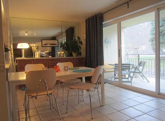 ALL NEW! Gorgeous and newly renovated condo with a custom cherry kitchen with new appliances. Freshly painted throughout, Newly renovated full bath-fabulous! Single floor living, bring the outdoors in with two private balconies for dinning and entertaining, open to main living area. Enjoy the private setting with beautiful wooded views. Large master with attached master bath. Amenities include: heated pool, tennis courts, dock space, clubhouse, sauna, Exercise rm . Walk-in laundry room with storage.