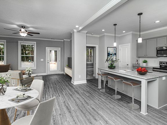 The Aviary floor plan features the owner's bedroom and bath on the main level of the home along with all of the many features offered by Executive Construction Homes. The home will offer Luxury Mohawk Vinyl Plank flooring throughout much of the main floor and wood treads on the stairs. A gas fireplace and elegant lighting throughout the home are also part of the features. Granite countertops are included in the kitchen as well as the bathrooms, and stainless appliances are provided in the open kitchen. The owner's suite has a large master bath with double vanities, a walk-in closet, a garden tub, and a separate shower and water closet. A large bonus/game room upstairs can be used as a 4th bedroom or entertaining, and you even have an additional loft space on the second floor! Are you looking for a guest bedroom or a home office on the main level? The Aviary plan can accommodate this wish also- this plan offers many different configurations and was designed with today's homeowner in mind. Located in LAKE CAROLINA- WOODLEIGH!Call today to tour!